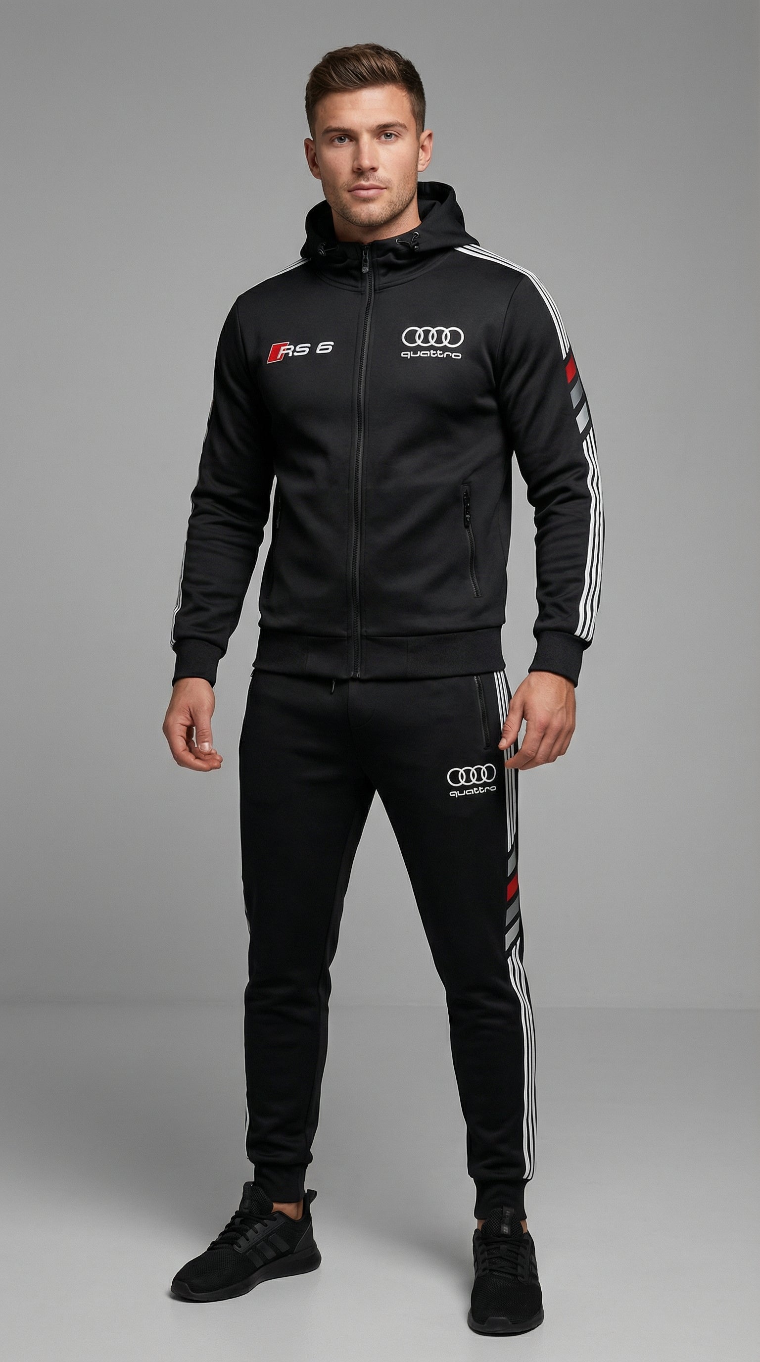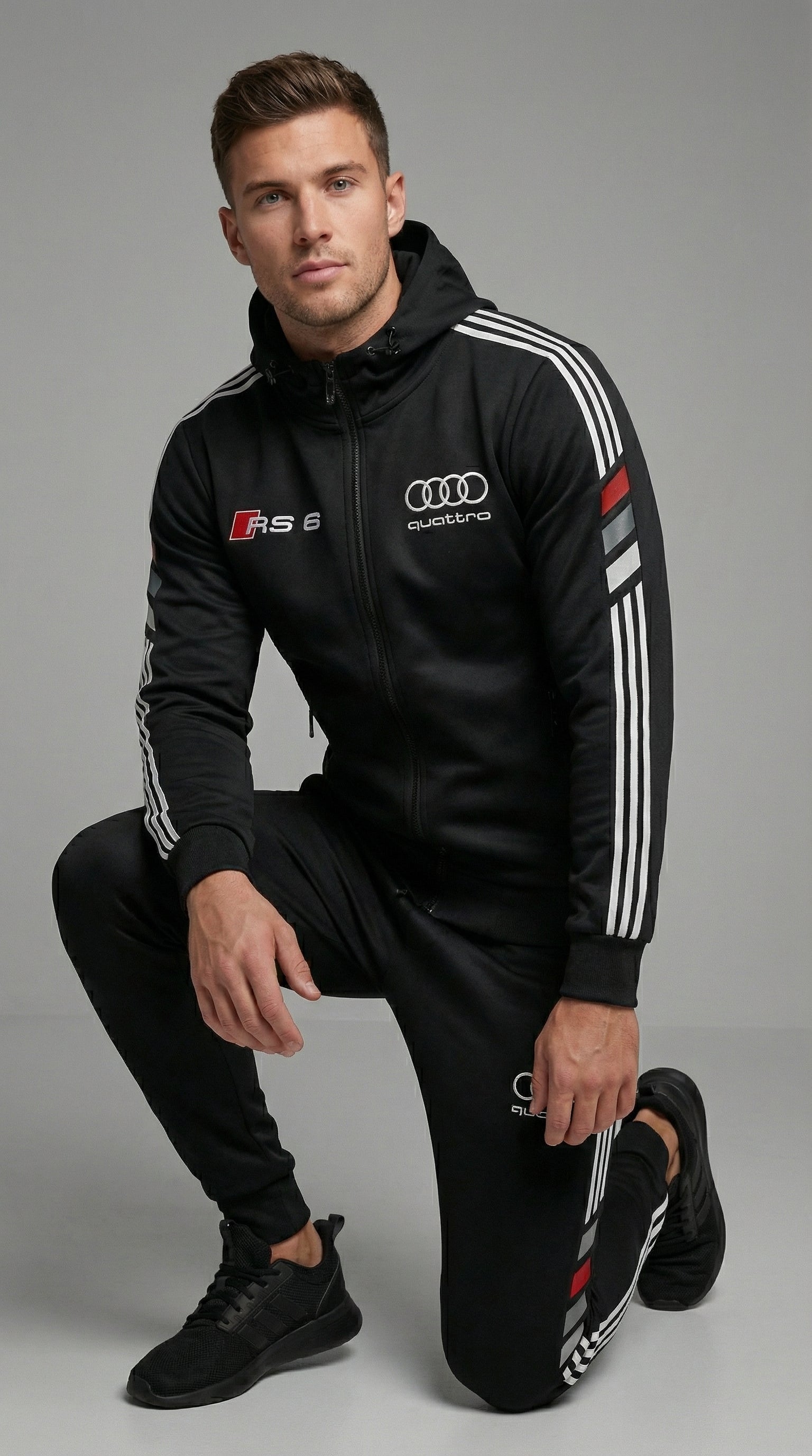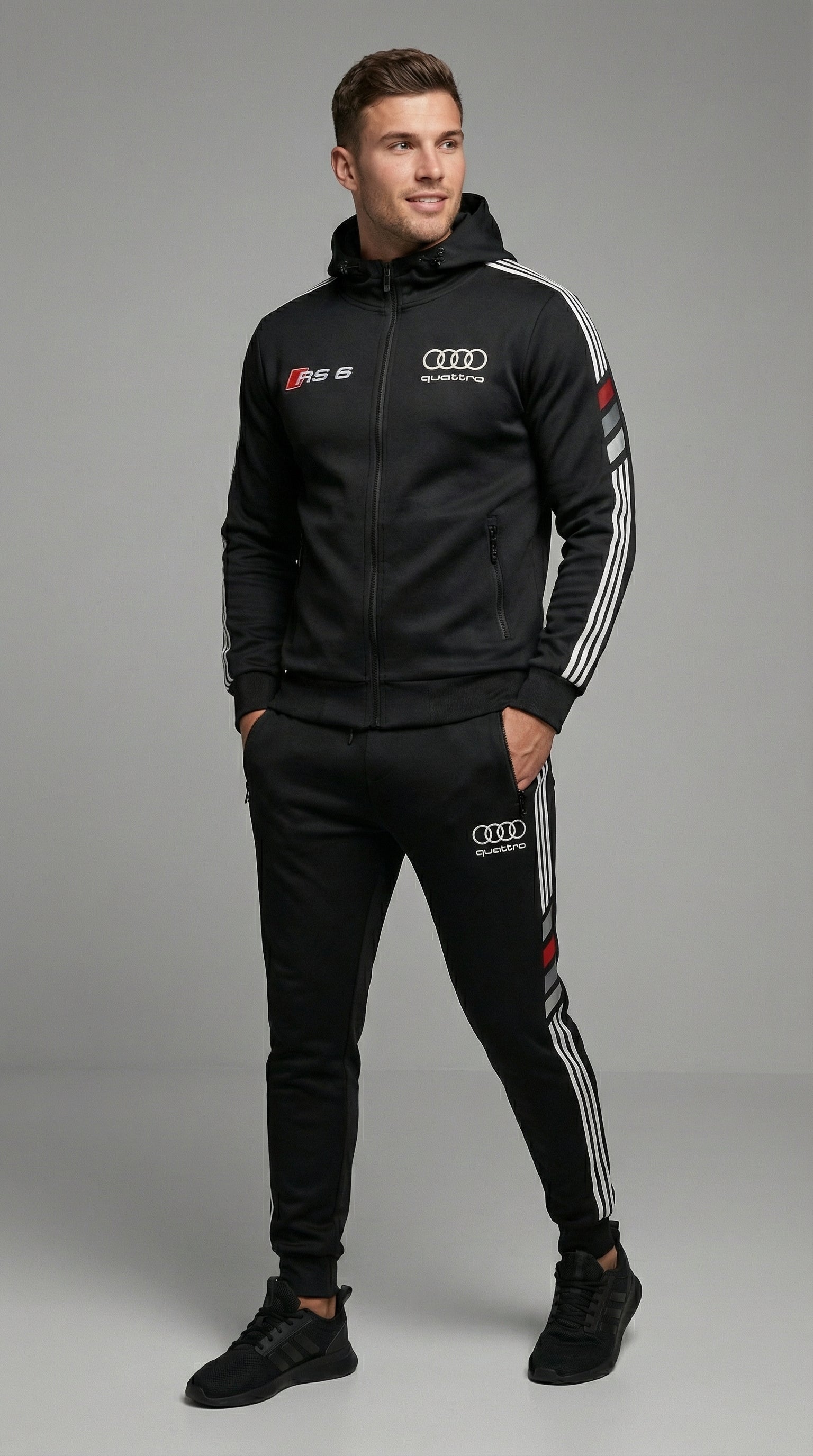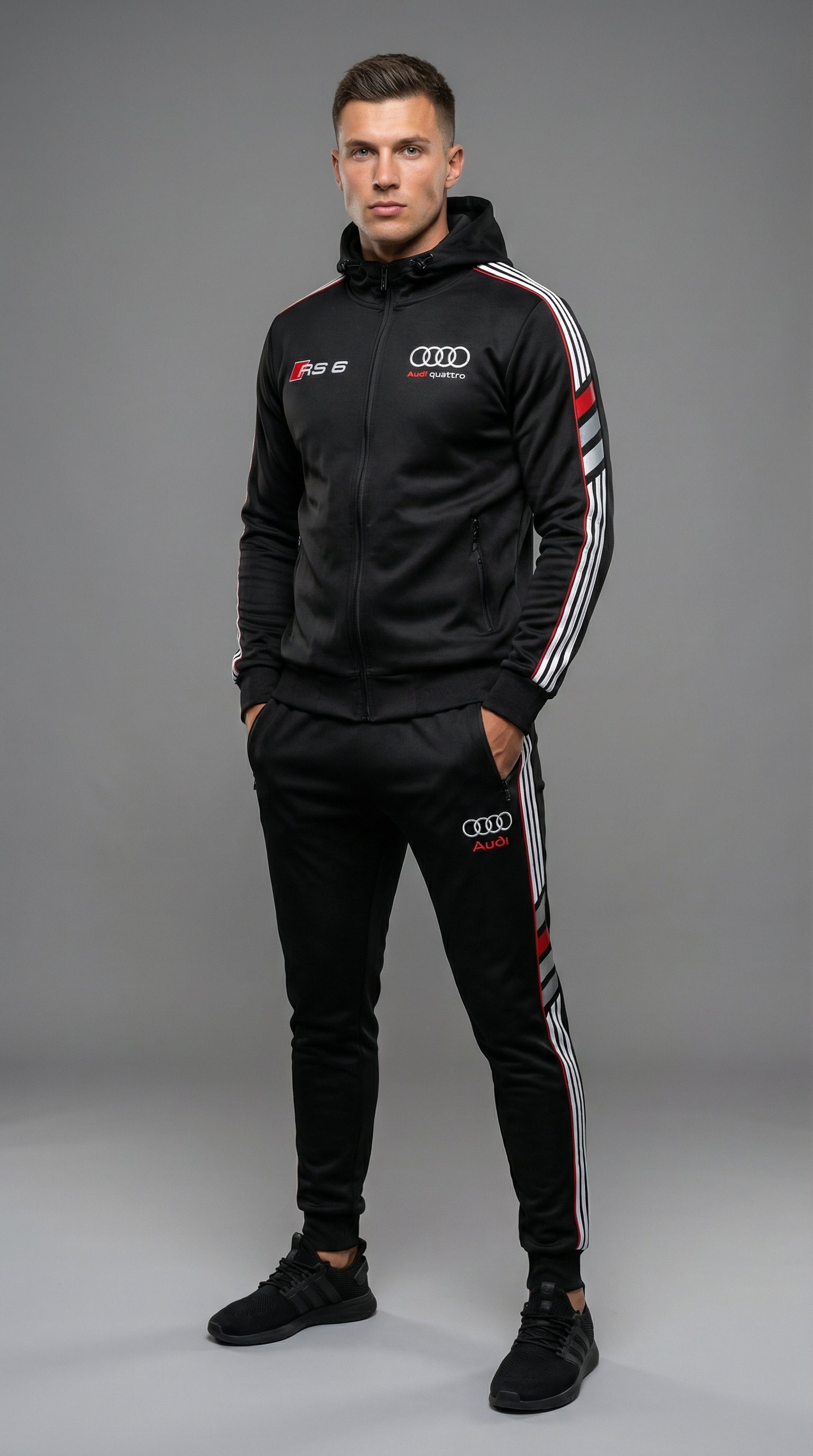Geef je stijl een boost met het exclusieve Audi-trainingspak.