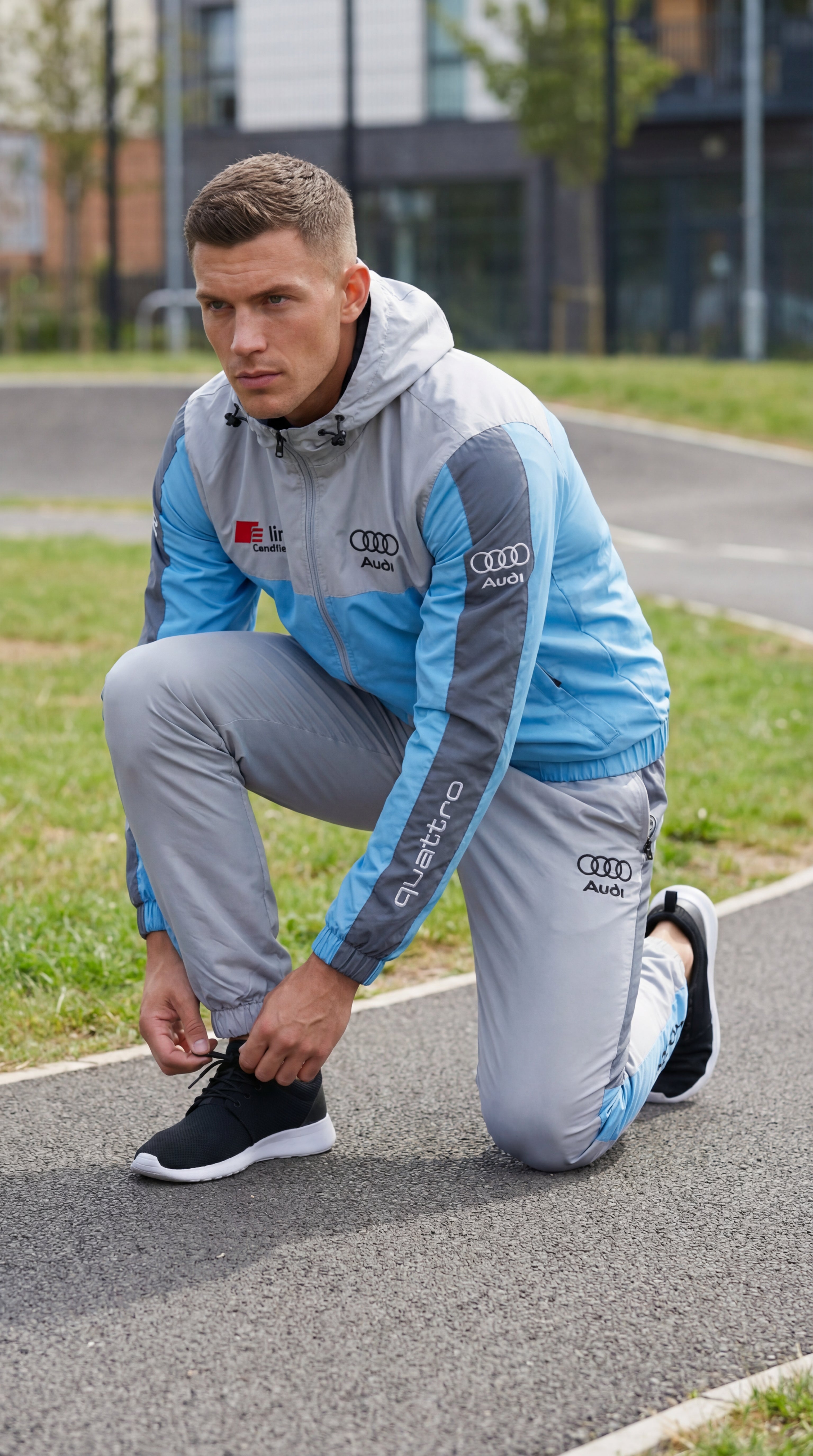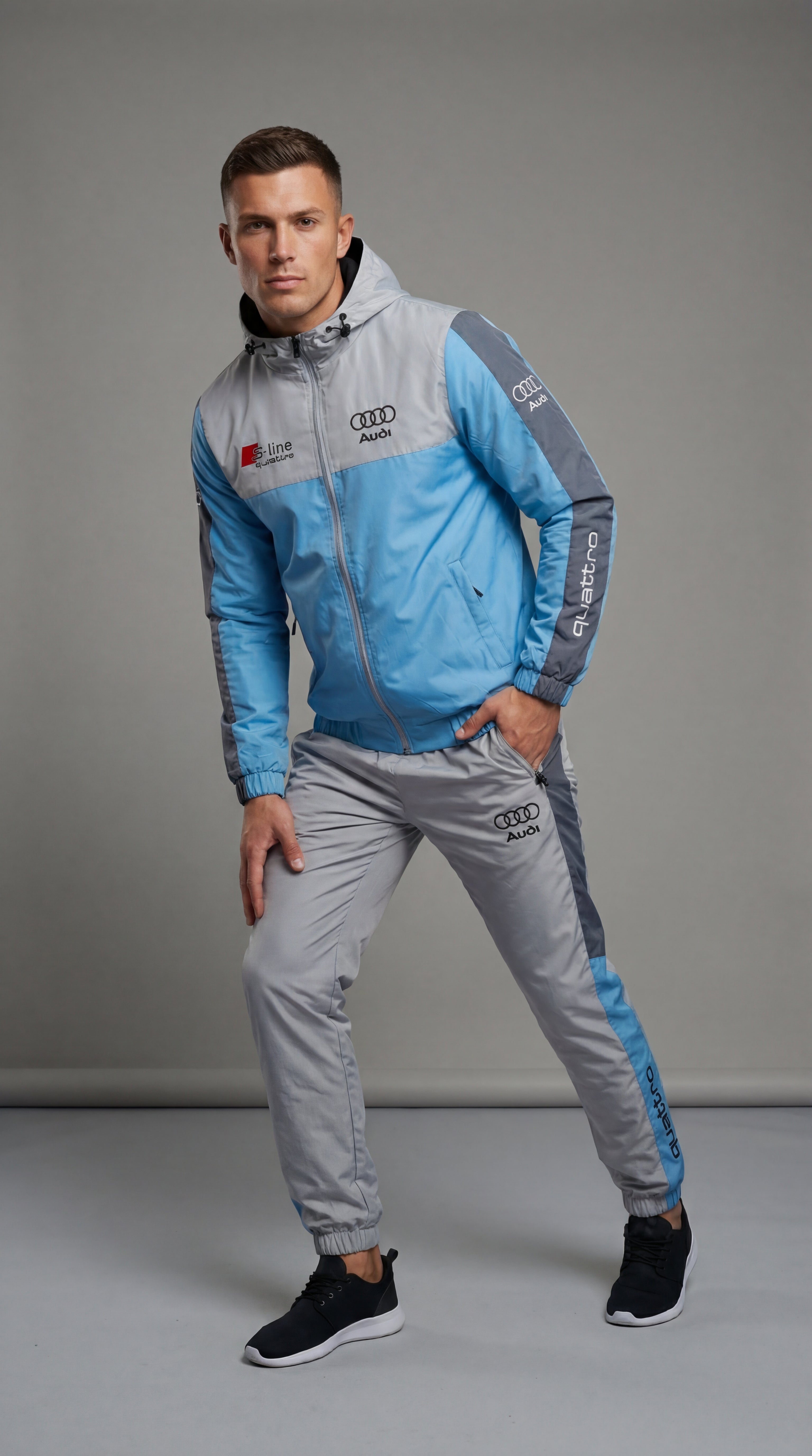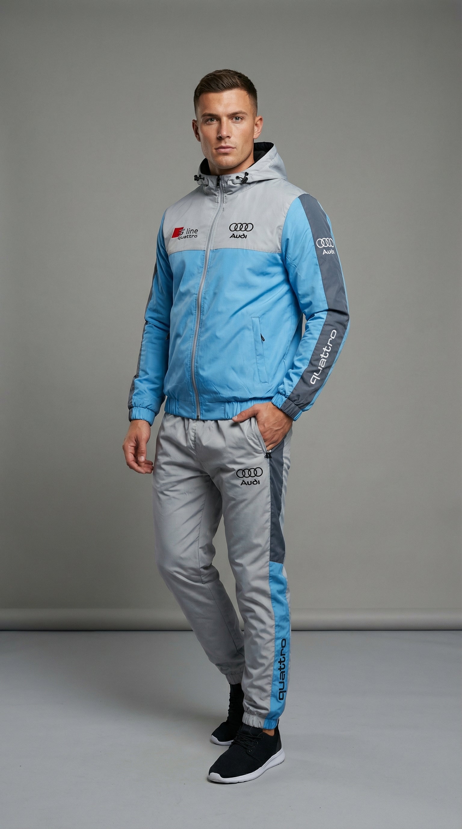 Geef je stijl een boost met het exclusieve Audi-trainingspak.