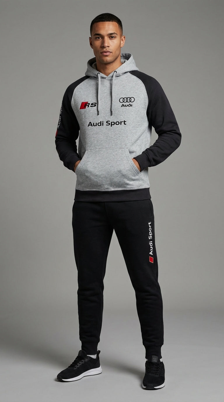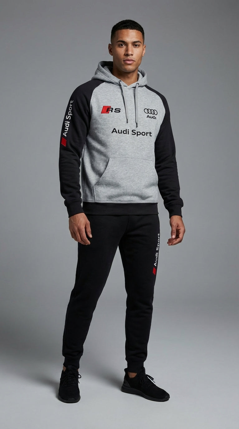 Every stitch reflects an obsession with detail, mirroring the precision often found in Audi automotive engineering. This automotive tracksuit effortlessly blends the adrenaline of the racetrack with your everyday wardrobe. Its sleek two-tone design, subtly inspired by Audi's dynamic aesthetic, delivers an exclusive presence that truly turns heads.